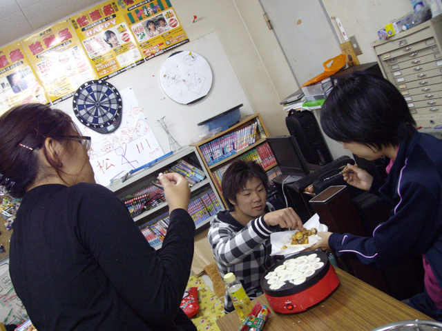 委員長と渉内長が作る一口アメリカンドッグの試作を今か今かと1年生が待機中です^^