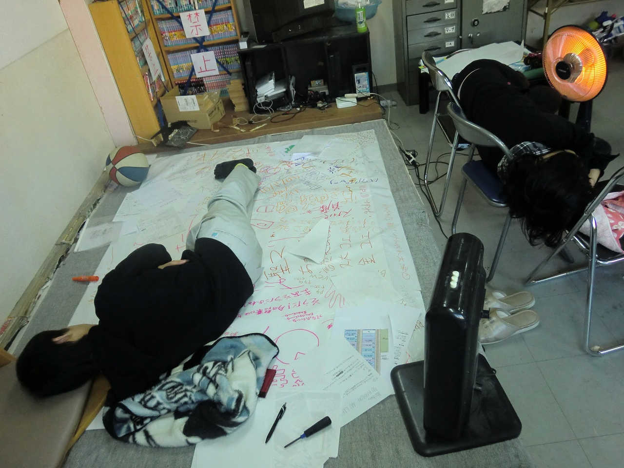 屋上での告知でしたが…寒い!スタジャンの下は3人揃って半袖でした(笑)